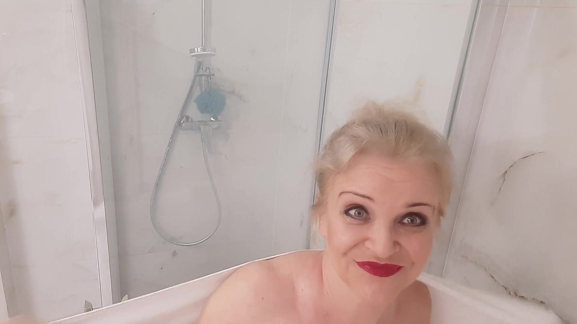 Older Blondie With Big Boobs Taking Steamy Shower