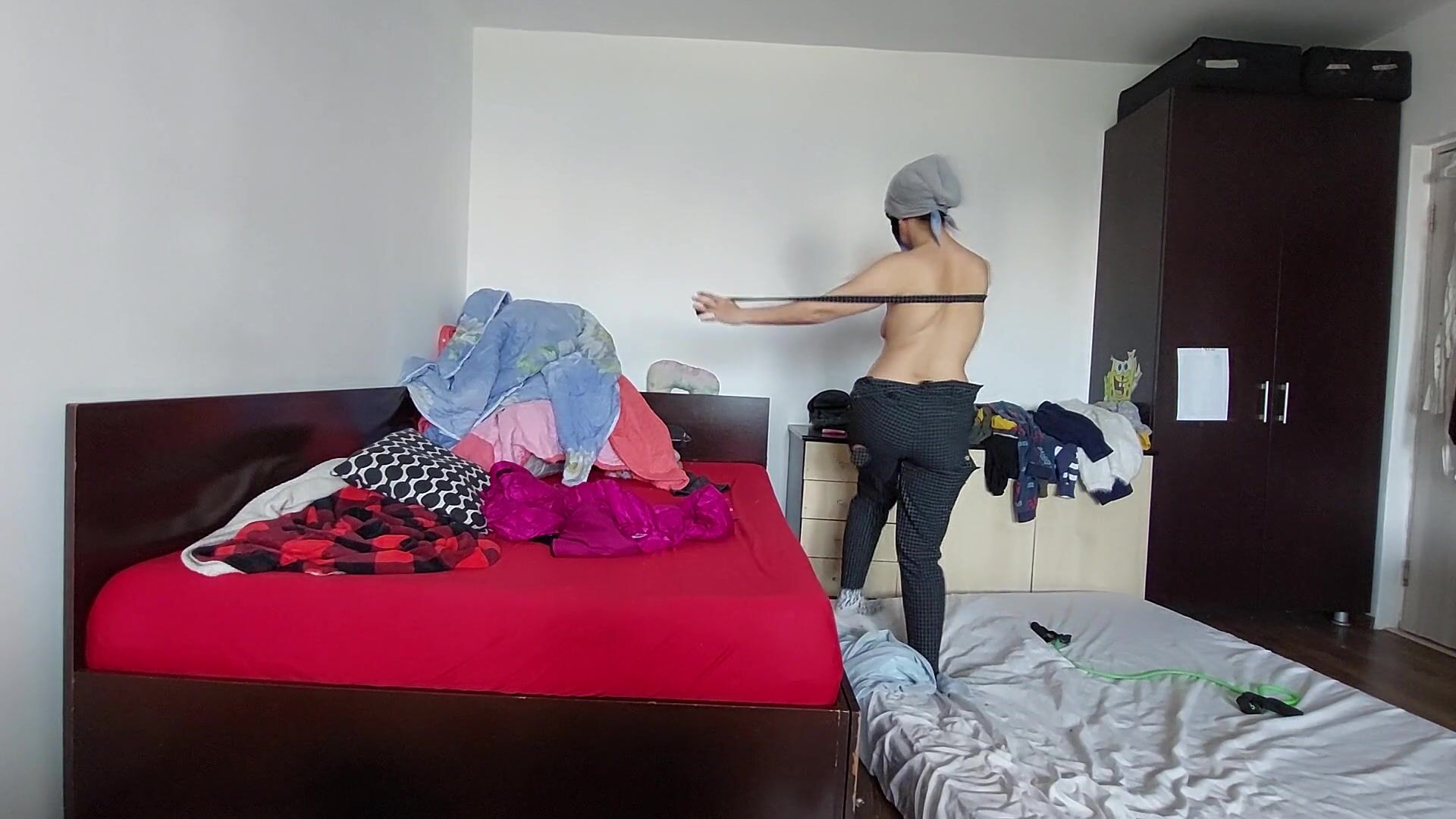 Amateur wife tries on clothes and cuts them. Latina hairy pussy, big tits, big ass.